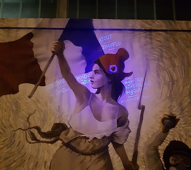 Aquí está la solución del "rompecabezas de Bitcoin" contenido en el fresco "Liberty guiding the people 2019" ubicado en 156 rue d'Aubervilliers en el distrito 19 en París.