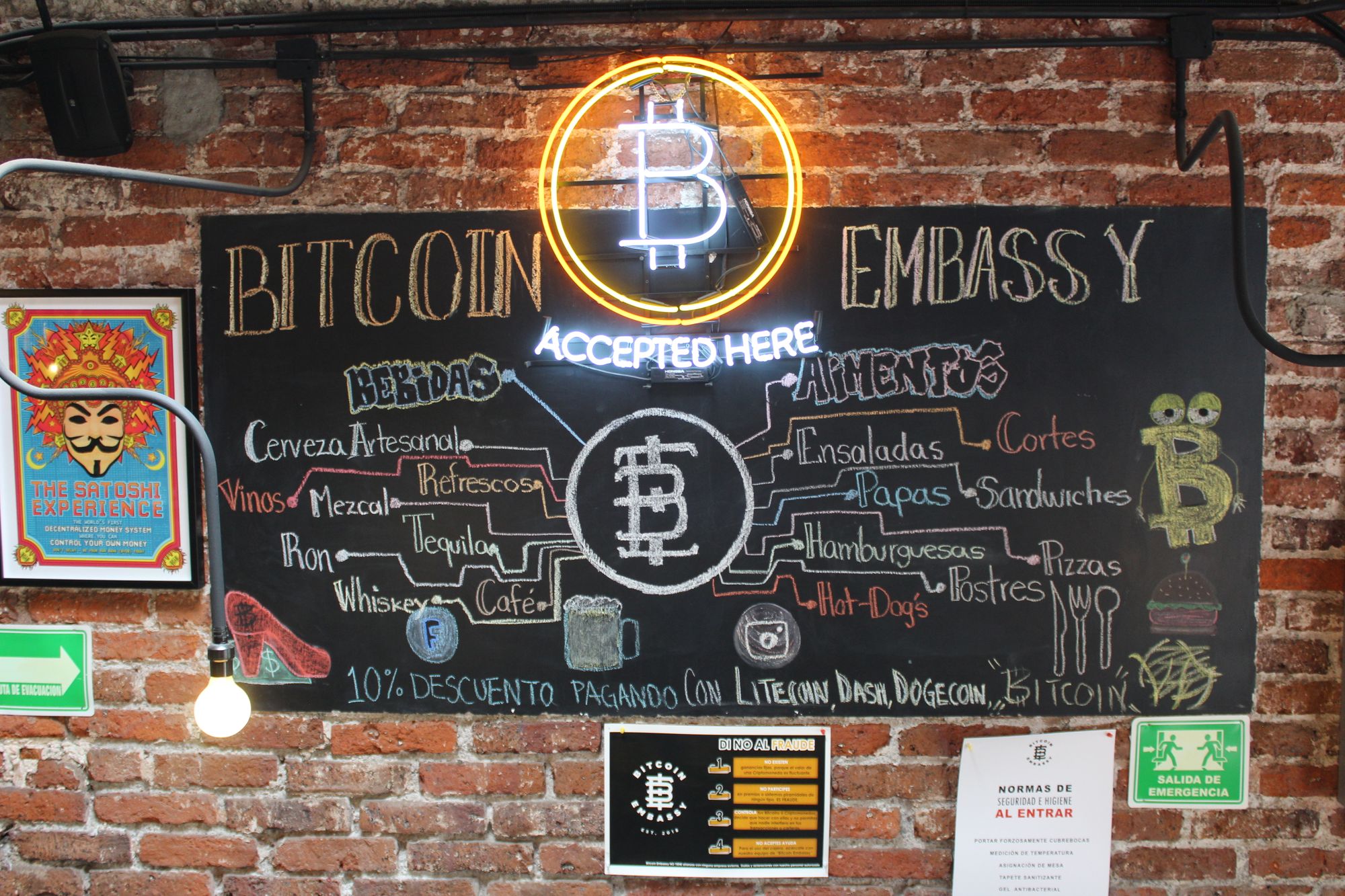 Uno de estos establecimientos es Bitcoin Embassy Bar, un restaurante bar situado en la colonia Roma, en la Ciudad de México, enfocado en las criptomonedas, el primero en el país con dicho concepto.