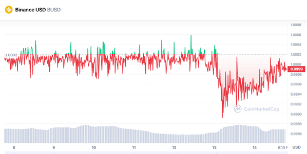 De hecho, como se puede observar en la imagen superior, en las últimas 24 horas, la capitalización de mercado de BUSD ya ha disminuido en un 1.2% según CoinMarketCap.