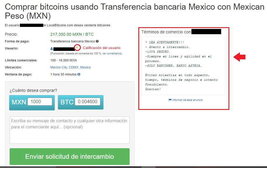 Sin importar si es tu interés es vender o comprar Bitcoin, recuerda que es siempre importante verificar los datos de la otra persona y sus calificaciones. Por ejemplo si vas a vender, revisa el perfil del comprador, sus evaluaciones y comentarios, y el historial de otras transacciones que haya realizado.
