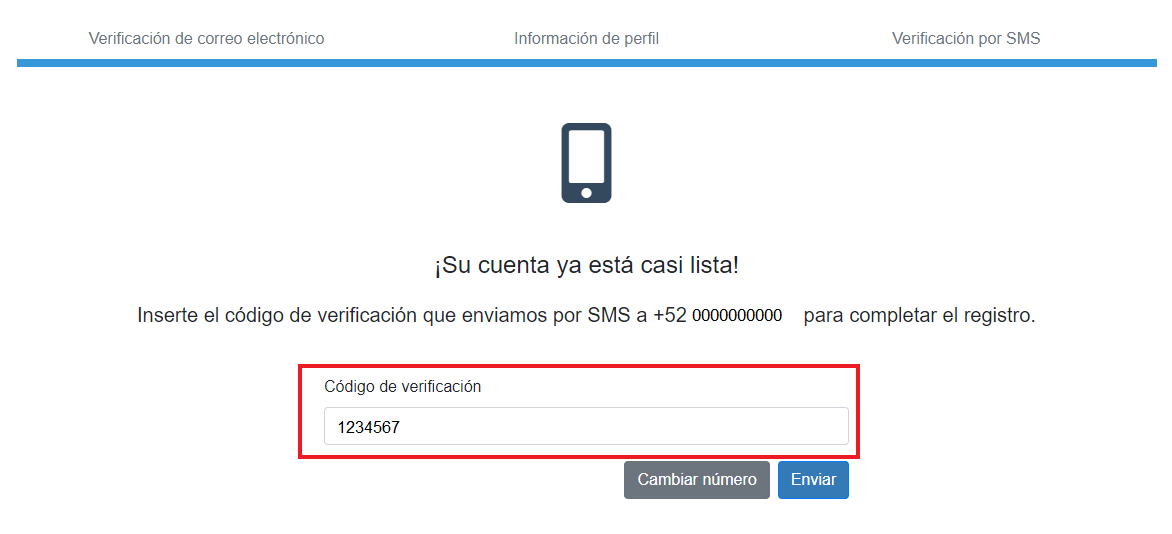 Luego se te enviará otro mensaje de confirmación, pero esta vez a tu teléfono celular. Ingrésalo donde lo pide. Terminado el proceso, se necesitará mayor verificación de cuenta. Por más engorroso que esto parezca, es por tu seguridad.