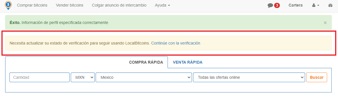LocalBitcoins tiene un proceso de verificación de cuatro niveles, que se diferencian entre sí por el volumen de transacciones realizadas y un sistema de verificación progresivo. A medida que realizan más operaciones, su cuenta será más verificada.