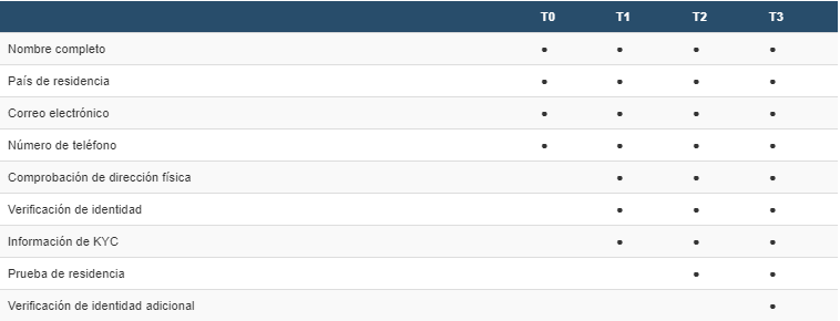 Nivel de verificación T3: Este es el piso más exclusivo y para ello debes operar más de 100,000 euros anuales. Aquí será todo más exigente: se necesita aprobar una prueba vida, completar un cuestionario adicional y enviar documentos solicitados. El proceso se hace de forma manual, por lo que puede tardar.