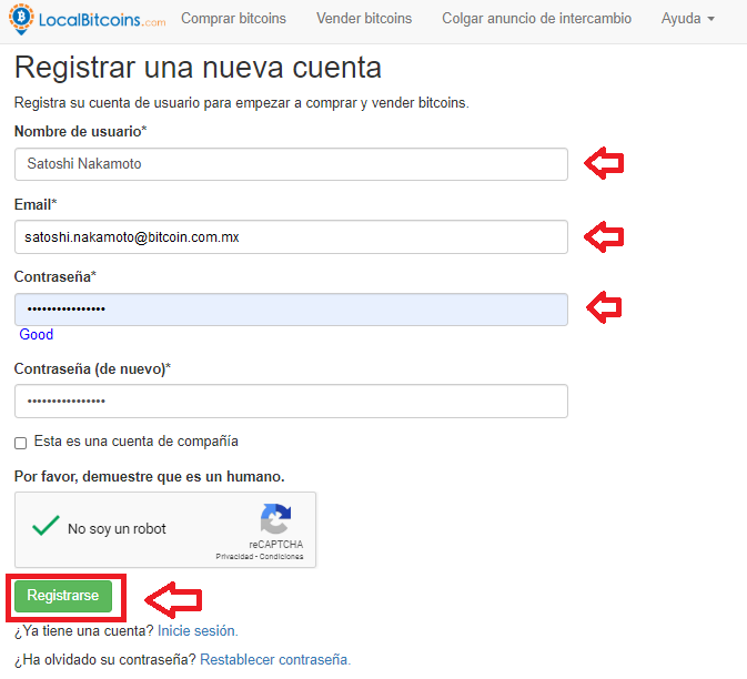 El primer paso, como en cualquier otro exchange, es crear una cuenta. El registro para operar es gratuito y lo haces desde el sitio www.localbitcoins.com.