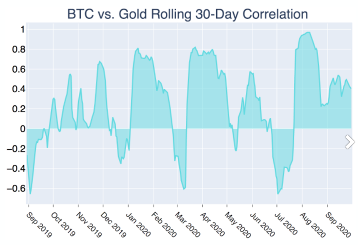 Igualmente, la correspondencia del activo de Satoshi Nakamoto con oro ha presentado signos positivos desde aproximadamente la mitad del mes de julio, además de que estos dos mercados presentaron una presión bajista en las últimas semanas, cuando presentó una caída del 4.7%, haciendo qie la correlación entre el otro y el Bitcoin cayera un 24 % debido a que el activo digital se mantuvo estable.