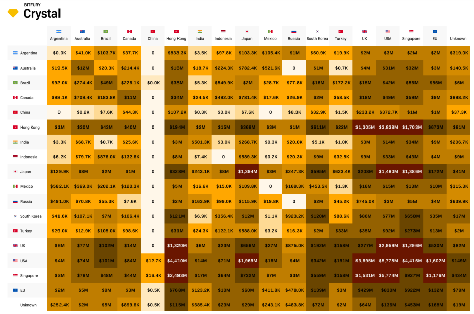 "En 2018, el volumen total de Bitcoin transferido directamente entre exchanges era de casi USD 92,600 millones. Un total de USD 65,100 millones fue transferido por los exchanges de los países del G20, Hong Kong y Singapur", se puede leer en el estudio.