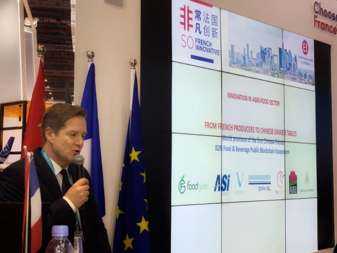 El evento que atrajo a más de 3 mil compañías de más de 150 países y regiones, incluidas 250 de las compañías como Qualcomm, Panasonic, LVMH, Samsung y Bombardier, fue el sitio propicio para que el presidente chino Xi Jinping y el presidente Emmanuel Macron de Francia, fueran los primeros en probar productos de alta calidad entregados y verificados por medio del primer ecosistema de cadena de bloques B2B público francés-chino, enfocado en productos de alimentos y bebidas.