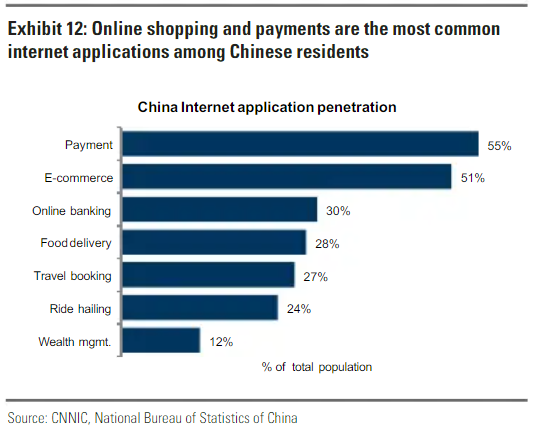 Según revela el informe, en 2019 más del 64% de la población eran usuarios de internet móvil en 2019, y el 96% de los servicios bancarios chinos se procesan en dispositivos electrónicos.