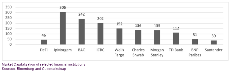 “En su punto más alto ($ 179 millones de TVL), DeFi sería el vigésimo banco más grande de los EE. UU.” , señala el reporte.