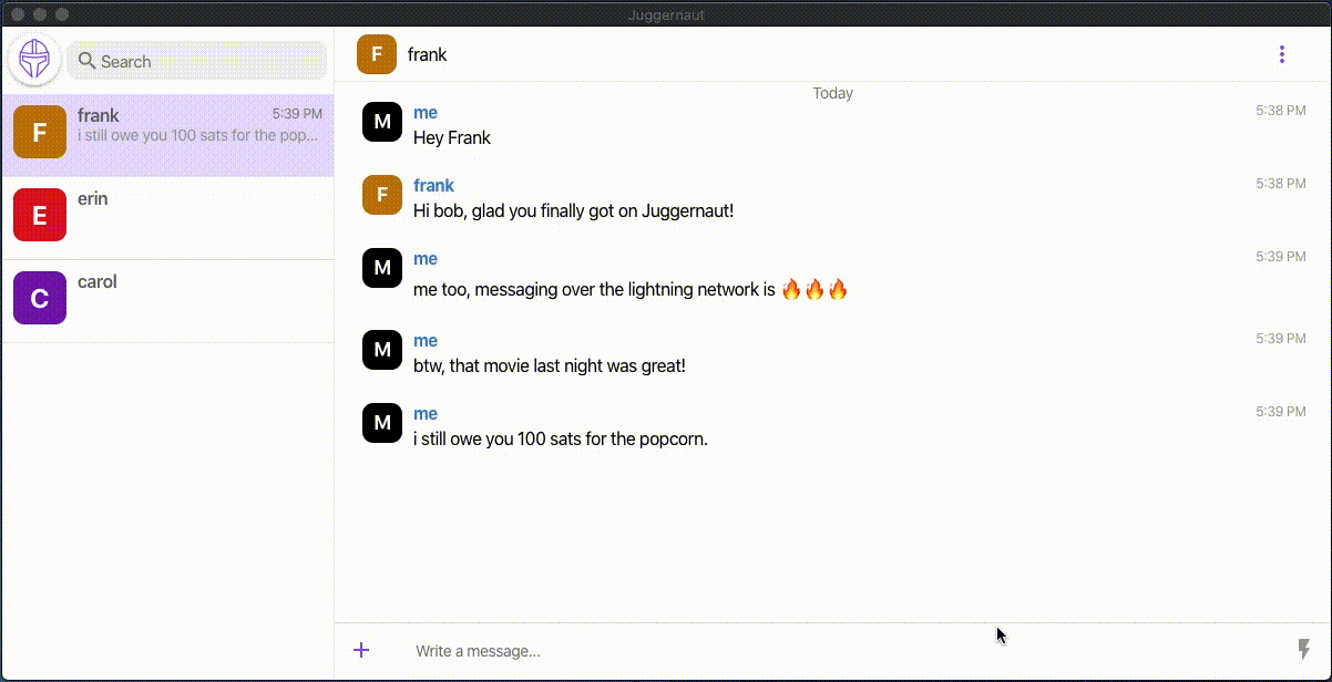 Para comenzar a usar Juggernaut, solamente necesitas sincronizarte con un nodo actualizado de Lightning Network, además de contar con fondos en el monedero para poder comenzar el envío de mensajes a través de la aplicación.