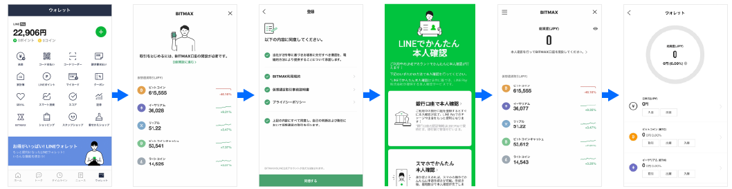 Para acceder al servicio de intercambio de criptomonedas, el usuario debe dirigirse a la pestaña de la billetera en la aplicación móvil LINE. De igual manera, BITMAX también se encuentra integrado en LINE Pay, con la finalidad de proporcionar un proceso de rampa de entrada de yen japonés más sencillo.