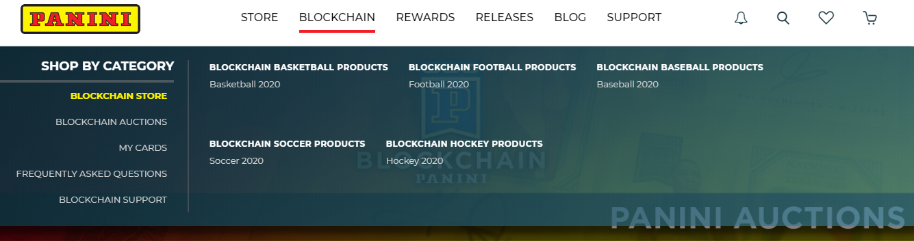 Las tarjetas comerciales de blockchain de Panini se lanzaron en su sitio web (https://www.paniniamerica.net) y se venden en un formato de subasta en dólares estadounidenses en lugar de una moneda digital. Se entregan 10 tarjetas de manera semanal. El activo blockchain vivirá en una plataforma cerrada, en la que los fanáticos de los deportes y los coleccionistas pueden comprar, vender y almacenar sus activos.