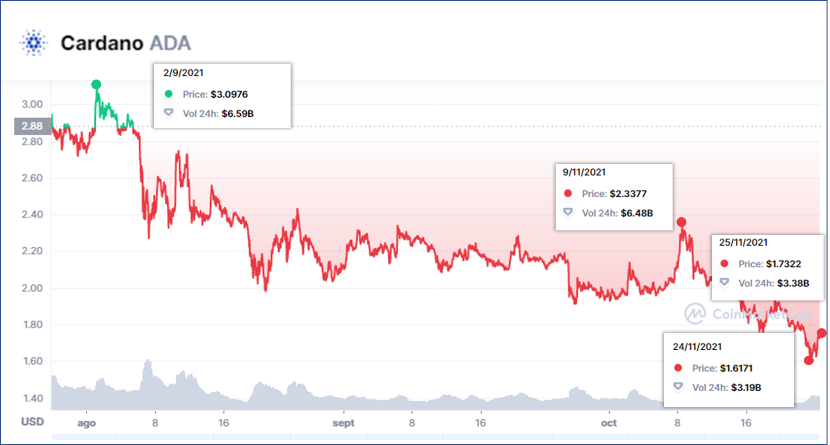 Cuando una criptomoneda es listada por un exchange grande como puede ser el caso de Coinbase, Binance o KuCoin, su precio se dispara y en cuestión de horas alcanza precios que parecen irreales, y de la misma manera cuando son dadas de baja estas suelen perder parte de su valor. Cardano actualmente atraviesa la segunda y hay crisis.