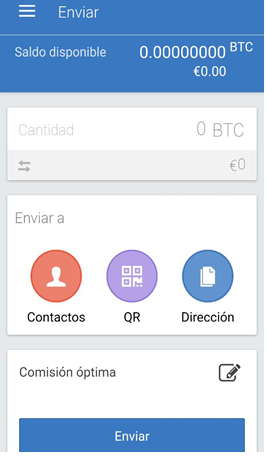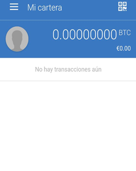 En el perfil principal se mostrará directamente la información que queremos ver. El monto de nuestra cartera, con una conversión en pequeños dígitos de la moneda nacional en la que estamos trabajando. Dicha moneda, podrá ser cambiada en la sección de ajustes si se desea, así como un código QR en la esquina superior derecha para transacciones.
