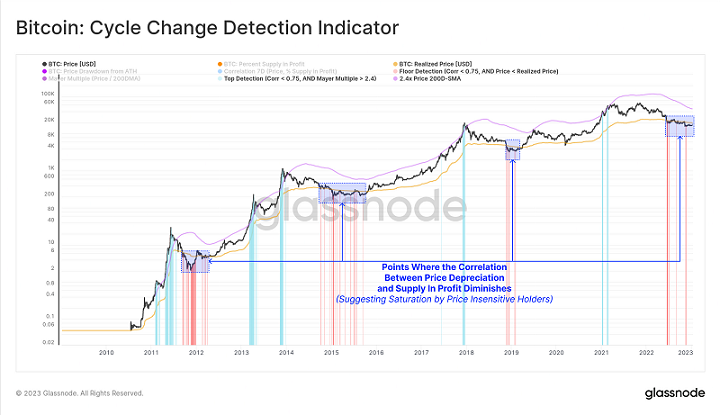 La cuarta tendencia que ratificaría un nuevo ciclo dentro de la criptomoneda más importante del mercado es el “Indicador de detección de cambio de ciclo de Bitcoin”.