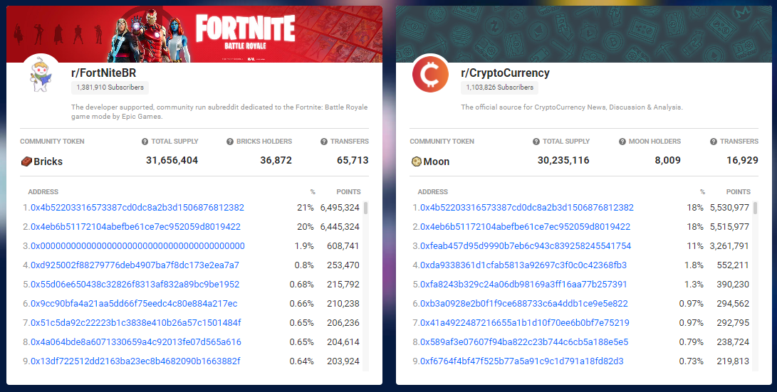 Aunque se esperaba que estos tokens fueran más populares entre la comunidad de criptomonedas, la comunidad ligada al juego de Battle Royal han registrado 9.246 billeteras para sus monedas "Bricks" mientras que los suscriptores de criptomonedas solo han registrado 2.205 billeteras para sus monedas "Moons".