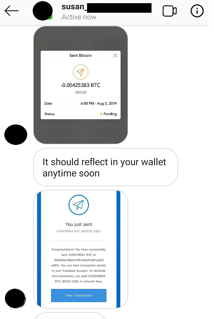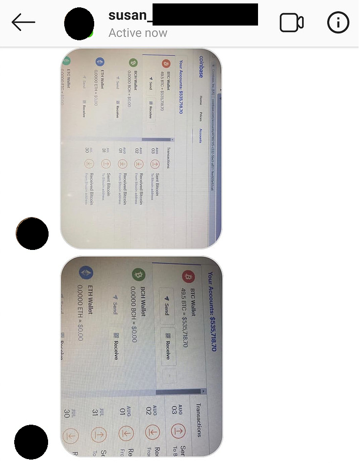 De esta forma, el YouTuber mantuvo una larga conversación con el usuario @susan_williams_2121 a través de Instagram, la cual comenzó con la promesa de doblar cualquier inversión que hubiera realizado por medio de una “innovadora plataforma de minería de Bitcoin”.